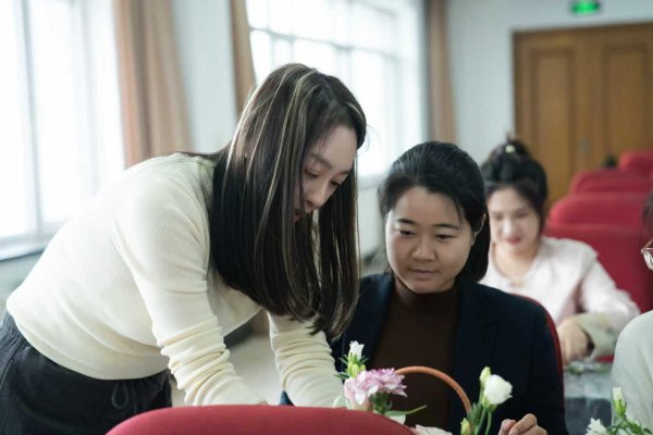 活動現場花香四溢、暖意融融。工會提前準備了玫瑰、康乃馨、洋桔梗、尤加利葉等豐富花材與工具,并特邀專業(yè)花藝老師現場授課。老師以通俗易懂的語言,細致講解花材特性、色彩搭配、修剪技巧與造型構圖,通過示范演示,讓大家快速掌握插花要點。