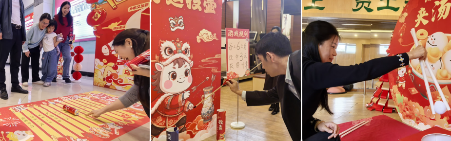 活動(dòng)于當(dāng)日16:00準(zhǔn)時(shí)開(kāi)啟,員工們有序簽到,領(lǐng)取集章卡與精美小禮品。熱鬧的場(chǎng)景、喜慶的氛圍,讓整個(gè)院區(qū)處處洋溢著輕松愉悅的氣息。這次游園活動(dòng)精心設(shè)置好運(yùn)投壺、趣味夾物、滾滾樂(lè)、歡樂(lè)套大鵝四大互動(dòng)項(xiàng)目,兼顧趣味性與參與感,員工手持集章卡踴躍闖關(guān),現(xiàn)場(chǎng)氣氛熱烈非凡。其中,歡樂(lè)套大鵝環(huán)節(jié)人氣最旺,大家凝神聚力、精準(zhǔn)拋圈,每一次成功命中都引來(lái)陣陣歡呼,每位參與者都盡興體驗(yàn)、挑戰(zhàn)自我,在趣味比拼中收獲滿滿喜悅。