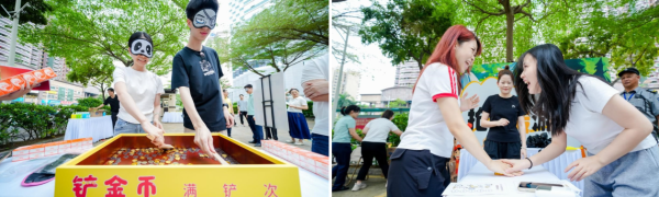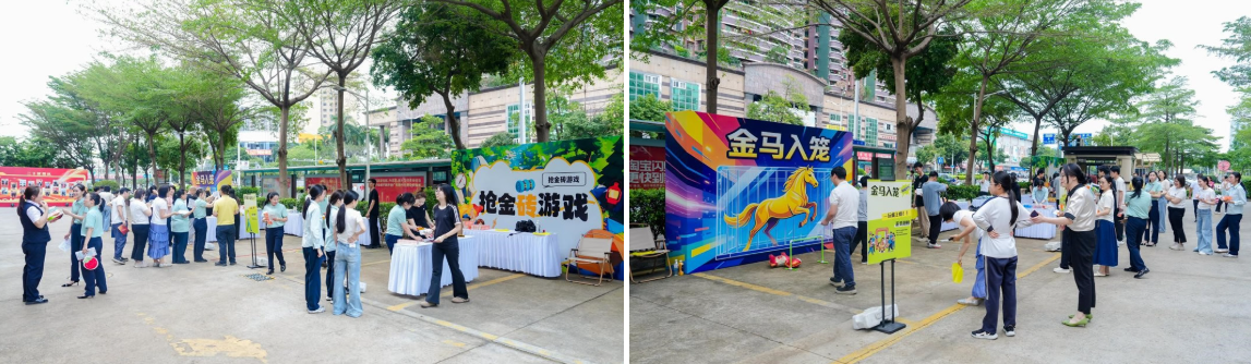 游戲區(qū)趣味盎然,走貓步、鏟金幣輕松解壓,搶金磚、眼疾手快、金馬入籠對戰(zhàn)熱烈。工會為獲勝者準備擦手巾、防曬冰袖、洗手液、眼罩等實用好禮,趣味互動高潮迭起,全員踴躍參與、樂在其中。