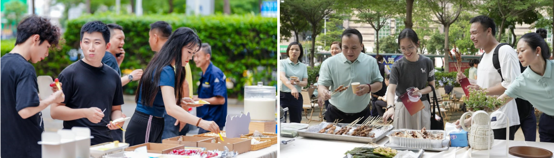 工會提前周密籌備,匠心打造美食區(qū)、休閑區(qū)、游戲區(qū)、樂隊演唱區(qū)四大場景,200張休閑椅在綠蔭下整齊排布,靜待全員赴約。14時許,悠揚旋律縈繞大院,活動正式拉開帷幕。美食區(qū)品類豐盛,拿鐵、鮮果飲、無醇葡萄汁、養(yǎng)生茶飲等飲品一應(yīng)俱全;牛角包、巴斯克、燒烤、烤全羊、羊雜湯、哈根達斯、提子、鳳梨等中西美食與特色小吃琳瑯滿目,舌尖盛宴盡顯貼心關(guān)懷。